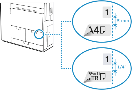 Bevestig papierformaatlabels zodat u gemakkelijker kunt zien welk type papier in de papierladen is geplaatst.