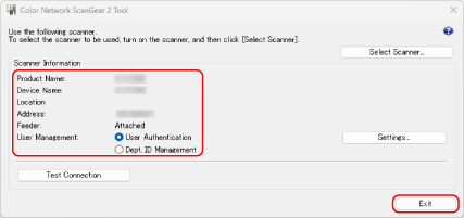 Controleer of de machine is geselecteerd en klik vervolgens op [Exit].