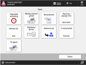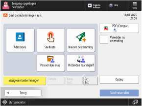 Gebruik dit scherm om de bestemming op te geven en het bestandsformaat en andere instellingen bij het verzenden te configureren.