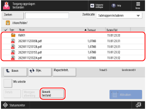 U kunt het bedieningspaneel van de machine gebruiken om de volgende bewerkingen uit te voeren voor bestanden die zijn opgeslagen in Geavanceerde ruimte: