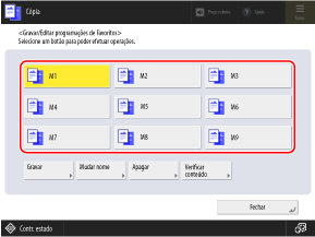 Pode registar programações de acordo com a sua finalidade e programações que pretende recuperar como "Programações favoritas" para digitalização, cópia e outras funções.
