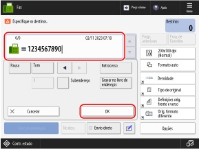 Pode especificar destinos usados anteriormente acedendo ao Registo TX no ecrã [Contr. estado] do painel de controlo.