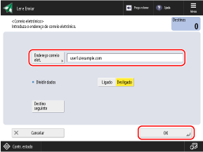 Quando especificar um destino selecionando um trabalho de digitalização no registo, pode premir [Destino seguinte] e especificar um destino adicional do mesmo tipo inserindo diretamente as informações.