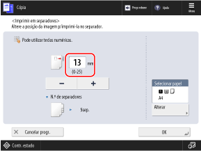 Também pode configurar as programações para inserir folhas ou separadores na cópia, e copiar para a parte separadora dos separadores.