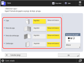 Pode também copiar o original para a capa. Inclua o original da capa no original normal quando quiser copiar para a capa.