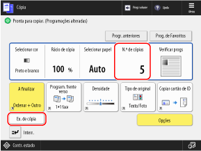 Antes de fazer um grande número de cópias, pode verificar o resultado final de um exemplo de cópia para reduzir erros de impressão e poupar tempo e papel.