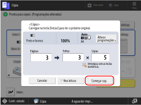 Antes de premir [Começar cop.], reintroduza o número de cópias utilizando as teclas numéricas.