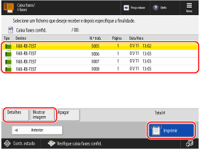 Selecione o fax a ser impresso, e carregue em [Imprimir]