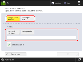 É possível definir um destino registado no livro de endereços (exceto destinos numa lista de endereços pessoais ou numa lista de endereços de grupo de utilizador) ou um endereço de correio eletrónico de um utilizador de início de sessão como destino de aviso.