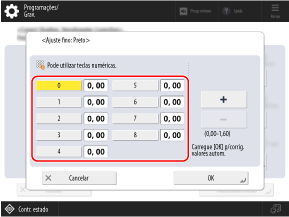 Utilize o painel de controlo para realizar o ajuste completo. Não pode efetuar correções com a Remote UI (Interface Remota) a partir de um computador.