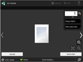 É possível exibir um ecrã de pré-visualização para verificar o conteúdo antes de enviar ou guardar os dados lidos. Também é possível alterar a ordem das páginas e eliminá-las no ecrã de pré-visualização.