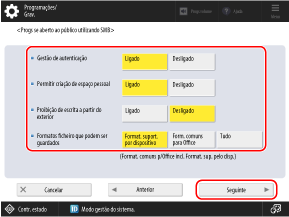 * Quando definido como [Ligado], não é possível ligar-se a Caixa avançada a partir de um sistema operacional cliente que não suporta comunicação de encriptação SMB v3.0.