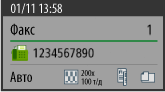 Отображение настроек количества адресатов, адресатов*1, формата оригинала, разрешения, 2-сторонней печати и оригиналов разных форматов.