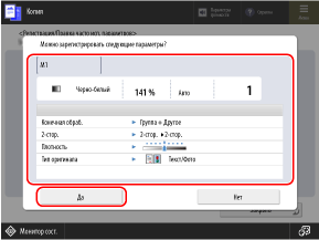 Можно настроить параметры так, чтобы экран проверки параметров не отображался при вызове пункта «Часто используемые параметры» для сканирования (Сканировать и отправить), факса и копирования. Таким образом, можно вызвать параметры, не выполняя шаг
