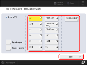 Выберите формат бумаги и нажмите [Далее].