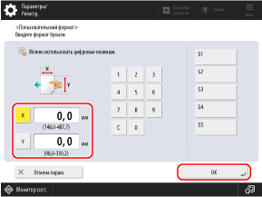 Если зарегистрированы часто используемые нестандартные форматы, их можно вызвать нажатием кнопок от [S1] до [S5].
