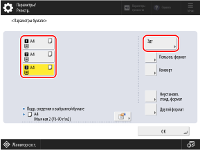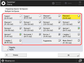 * Если тип загруженной бумаги не отображается в списке, зарегистрируйте тип бумаги.