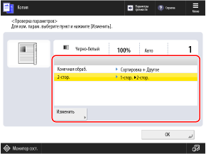 С помощью кнопок настроек на этом экране можно настраивать параметры при копировании.