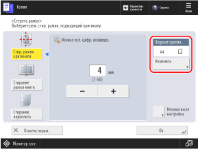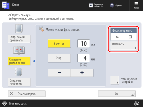 * Стирать рамку можно только при копировании форматов, отображаемых на экране выбора формата оригинала.