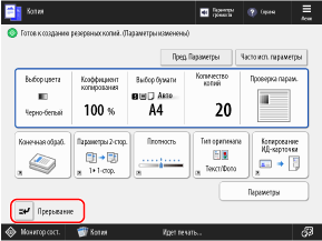 Обрабатываемая операция копирования или печати приостановится, и начнется выполнение задания с прерыванием.