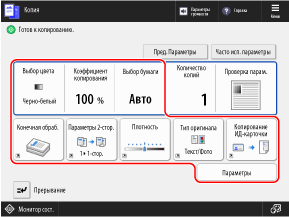 Вы можете нажать [Предыдущие параметры] для вызова параметров, которые использовались для копирования в прошлом.