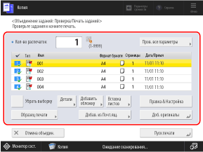 Отобразится диалоговое окно [Объединение заданий: Проверка/Печать заданий].