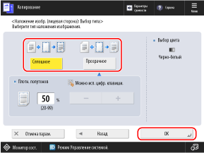При изготовлении двусторонних копий задайте параметры лицевой и обратной сторон отдельно.