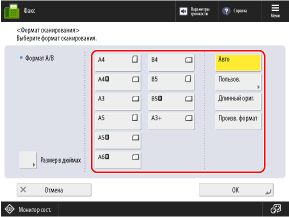 Если зарегистрированы часто используемые нестандартные форматы, их можно вызвать нажатием кнопок от [Зарегистр. формат 1] до [Зарегистр. формат 5].