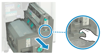 Возьмитесь за зеленый рычаг на картридже со скрепками и потяните его.