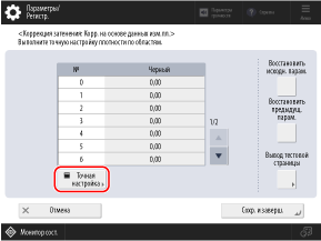 Используйте панель управления для выполнения полной настройки. Выполнить коррекцию с через Remote UI (Удаленный ИП) с компьютера невозможно.