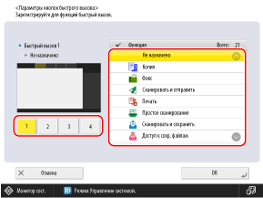 Меню] на экране [Главный], а затем выберите [Параметры кнопок быстрого вызова функций].