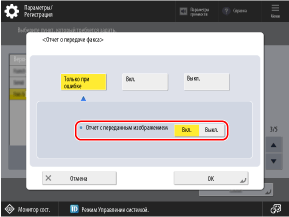 Если требуется печать первой страницы оригинала в отчете, задайте для параметров [Отчет с переданным изображением] и/или [Отчет с переданным цветным изобр.] значение [Вкл.].