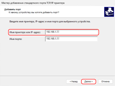 Отобразится диалоговое окно [Мастер добавления стандартного порта TCP/IP принтера].