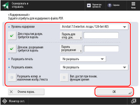 * Эта опция доступна только при выборе значения [Acrobat 3.0 или более поздн./40-бит. RC4] для параметра [Уровень кодировки].
