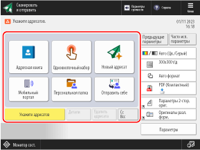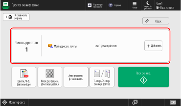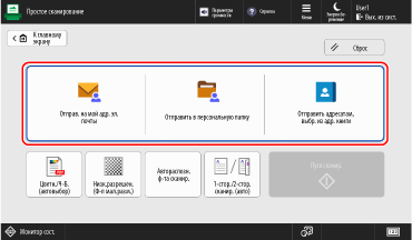 С помощью Простое сканир. и отправка/Простое сканирование можно выбрать адресатов, указать параметры цвета и настроить другие основные функции, выполняя простые операции с кнопками.