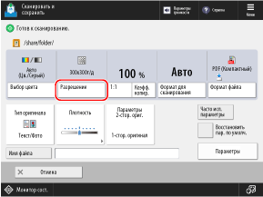 На экране сканирования нажмите [Плотность] или [Параметры]