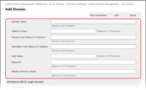 Укажите доменное имя адресата входа в поле [Domain Name] в разделе [Domain Name to Set for Login Account].