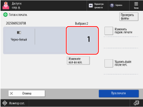Чтобы выполнить печать в соответствии с параметрами печати, сохраненными в файле, не нажимайте [Изменить парам. печати]. Нажатие [Изменить парам. печати] может привести к отключению сохраненных параметров печати.
