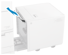 Извлеките бумагу, застрявшую в POD Deck Lite-C или Paper Deck Unit-E. Следуйте инструкциям на панели управления, чтобы найти расположение замятия бумаги и удалить замятую бумагу.