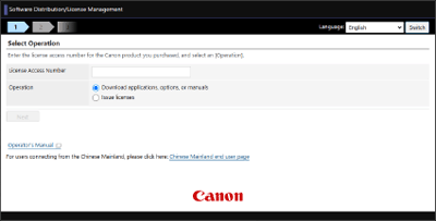 The following information is required for acquiring a license file.The license access number attached to the package of the MEAP application Serial number* of the machine displayed in <Device Status> in <Status Monitor> * You can also check the serial number through the SMS screen. Managing MEAP Applications |