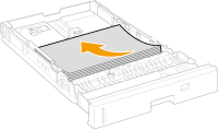 For the optional Paper Feeder PF-L, follow the procedure in Loading Paper in the Paper Drawer. The available paper sizes may differ for the paper drawer of the main unit and the optional Paper Feeder PF-L. For more information, see Available Paper. If there are instructions on the paper package about which side of the paper to load, follow those instructions. Paper may overlap when it is fed or a paper jam may occur, depending on the cut surface of the paper. Changing the paper orientation and loading it again may reduce the effect of the cut surface. If paper runs out and printing is stopped, load a new paper stack. Printing restarts after the new paper stack is loaded. |