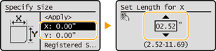 | Select <X> or <Y> to specify the length of each side using the numeric keys or  /  . |