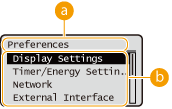 Select <Set> to display the <Menu> screen. Many of the settings of the machine, such as the management settings, display settings, and network settings, are configured by selecting <Set> first.