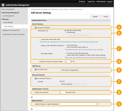 8 | Click [Update]. The screen returns to the [Edit Server Settings] screen. |