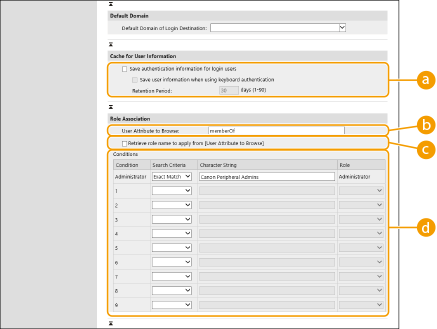 [Character String] | Enter the character string that is registered to the attribute specified in [User Attribute to Browse:]. To set the privileges based on the group that user belongs to, enter the group name. |