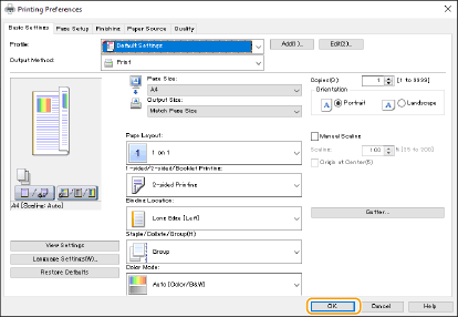 Clicking [Help] (Window) or  (Mac OS) on the printer driver setting screen displays the Help screen. For information that is not in the User's Guide, including about driver features and how to set up those features, see Help.