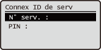 Saisissez l'ID et le code PIN dans <N° de service> et <Code PIN>