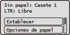 Si el tamaño/tipo de papel que se muestra es distinto al tamaño/tipo de papel que está cargado, seleccione <Opciones de papel> y el origen de papel donde ha cargado el papel.
