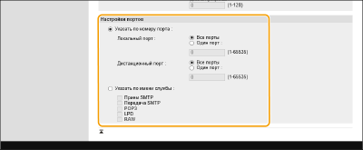 3 | Especifique el puerto al que aplicar IPSec. ![]() Seleccione [Especificar por n.º de puerto] para utilizar los números de puerto al especificar los puertos a los que se aplica IPSec. Seleccione [Todos los puertos] para aplicar IPSec a todos los números de puerto. Para aplicar IPSec a un número de puerto concreto, seleccione [Puerto único] e introduzca el número de puerto. Especifique el puerto de este equipo en [Puerto local] y especifique el puerto del interlocutor de la comunicación en [Puerto remoto]. Para especificar los puertos a los que se aplicará IPSec por nombre de servicio, seleccione [Especificar por nombre de servicio] y seleccione los servicios a usar. | ||||||||||||||