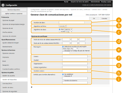 Haga clic en [Gestión del dispositivo]  [Opciones de clave y certificado].
